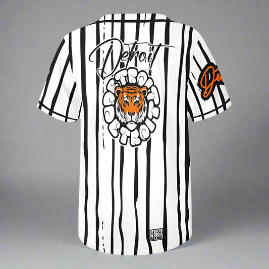Detroit Tiger Stripe Baseball Jersey – Black & White Edition