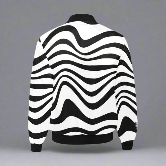 Black & White Bold Wavy All Over Print Bomber Jacket for Men