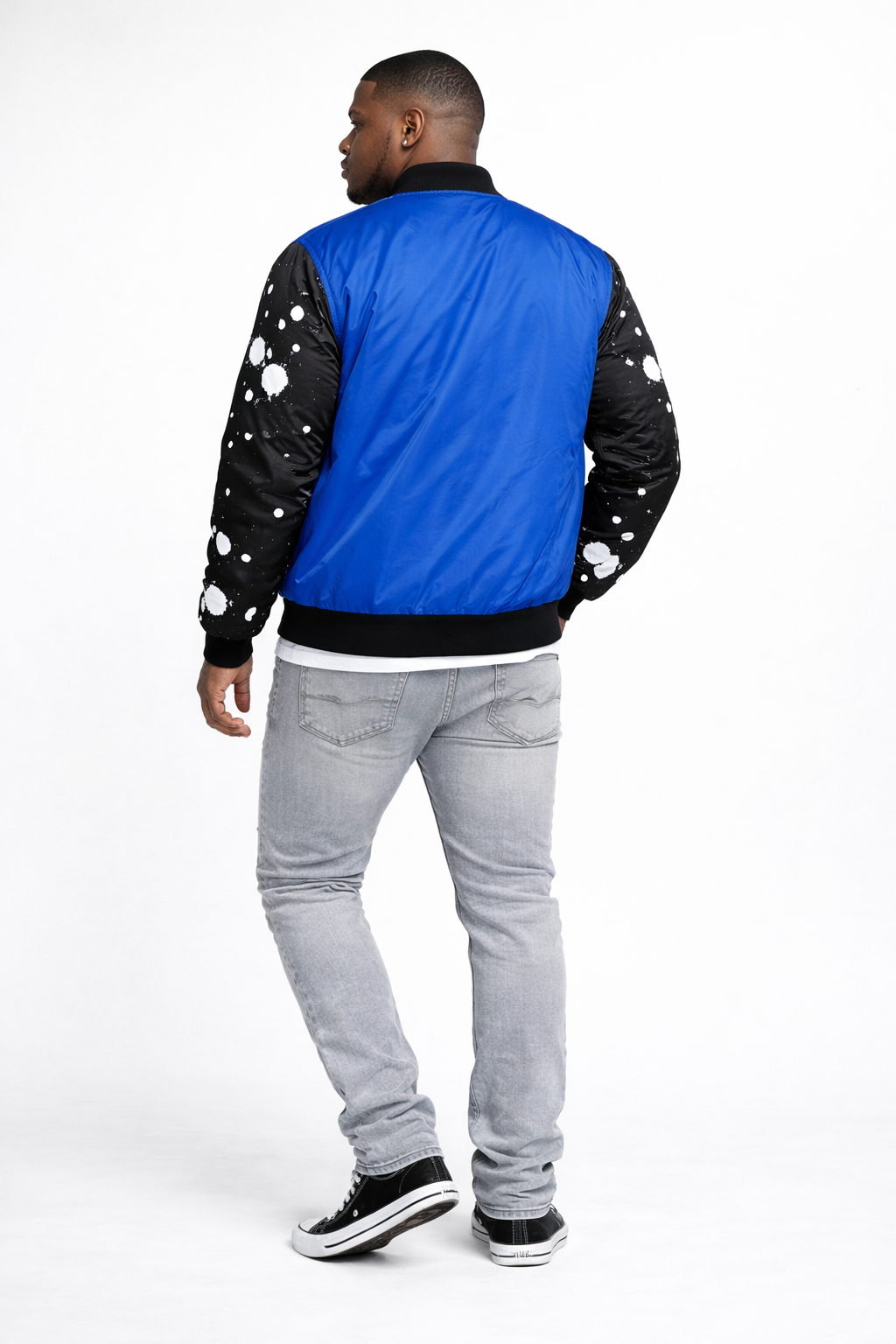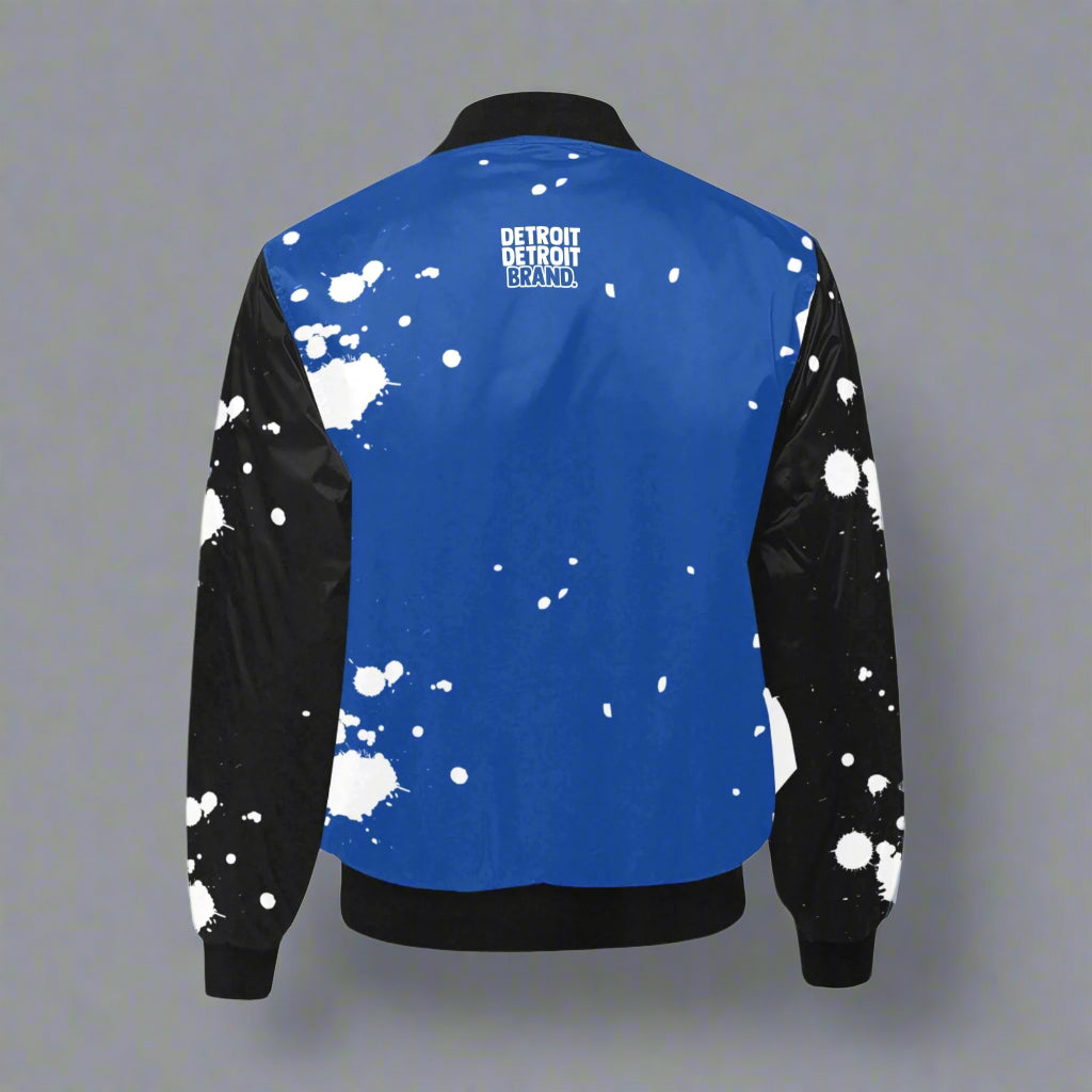 Detroit Blue Paint Splatter Bomber Jacket – Black & White Sleeve Edition