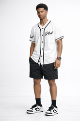 Detroit Script Baseball Jersey – White / Black Trim